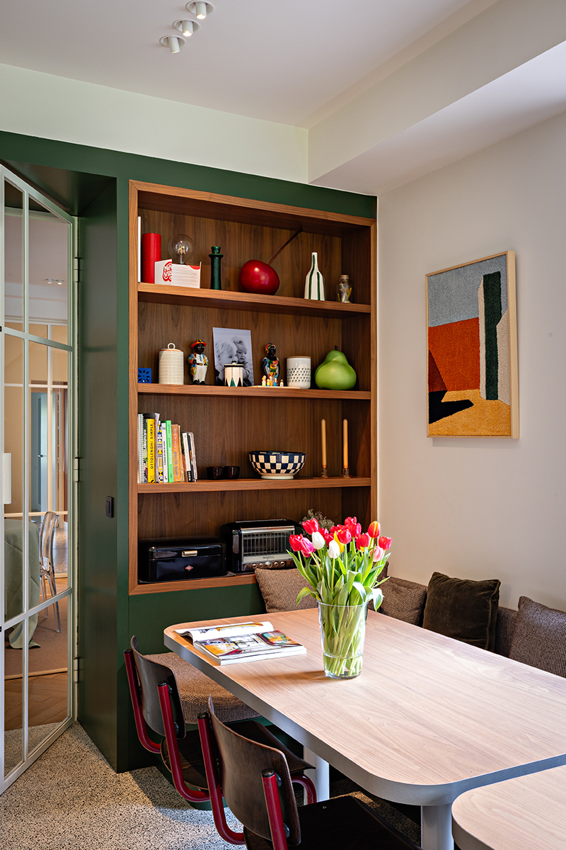 Rénovation en profondeur d’une maison de famille. Extension côté jardin. Matériaux : acier, verre, bois nobles et terrazzo.